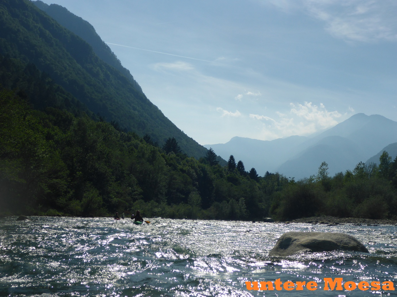 Aber ob man nach dem wildwassertechnisch interessanten Abschnitt der Moesa bis zur Mündung weiterfährt und auf dem Ticino ebenfalls noch einige Kilometer zurücklegt, bleibt jedem selbst überlassen. Ich würde aber das nächste Mal lieber etwas früher aussteigen und den interessanten Abschnitt zwei, drei oder noch öfters befahren.